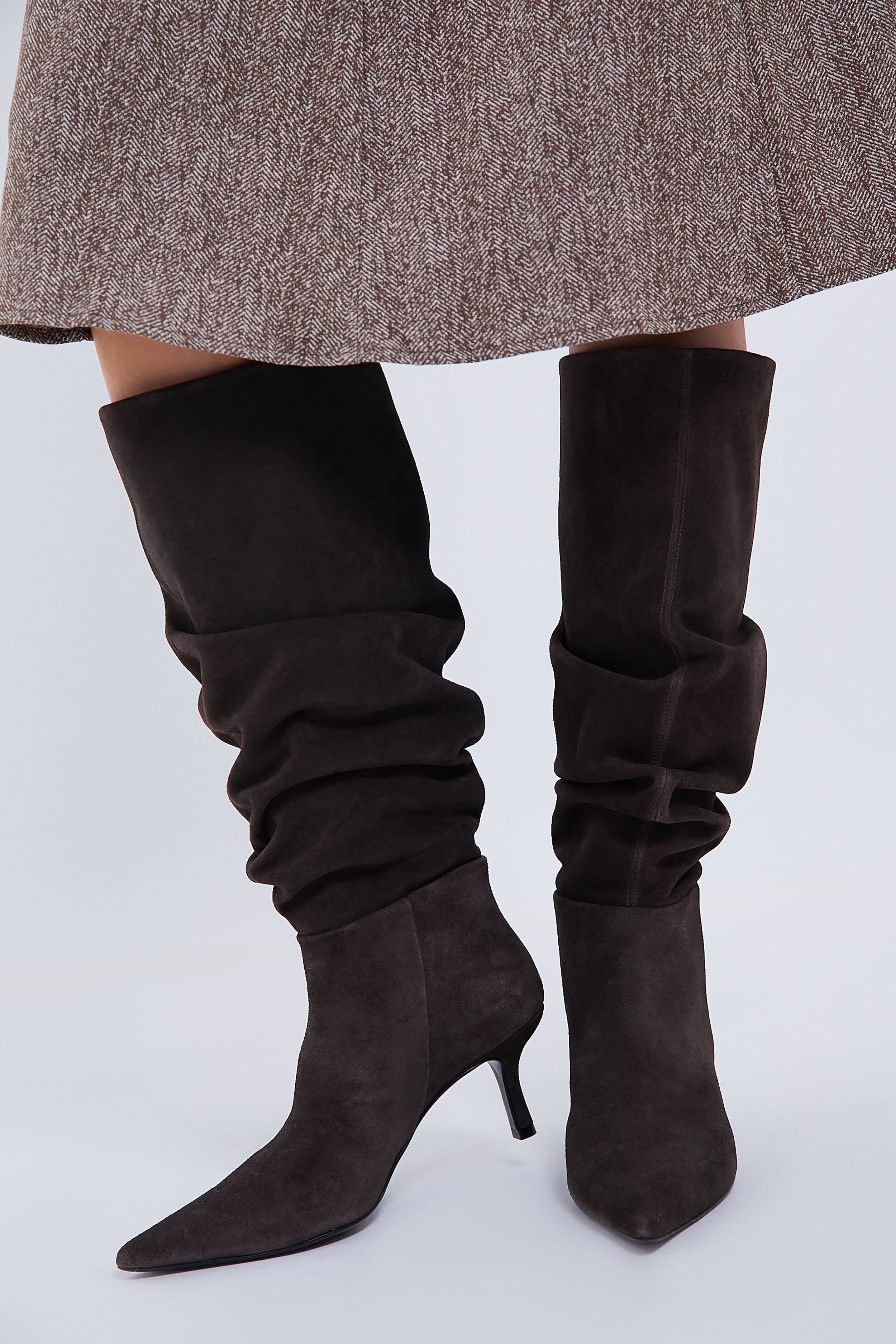 We are loving these ultra-chic Jordi Suede Slouch Boots for their practicality and high-fashion. Made from a buttery leather. they sit on a walkable midi heel for all-day comfort and class. Pair with a mini and blazer or wide leg denim and sweater!
