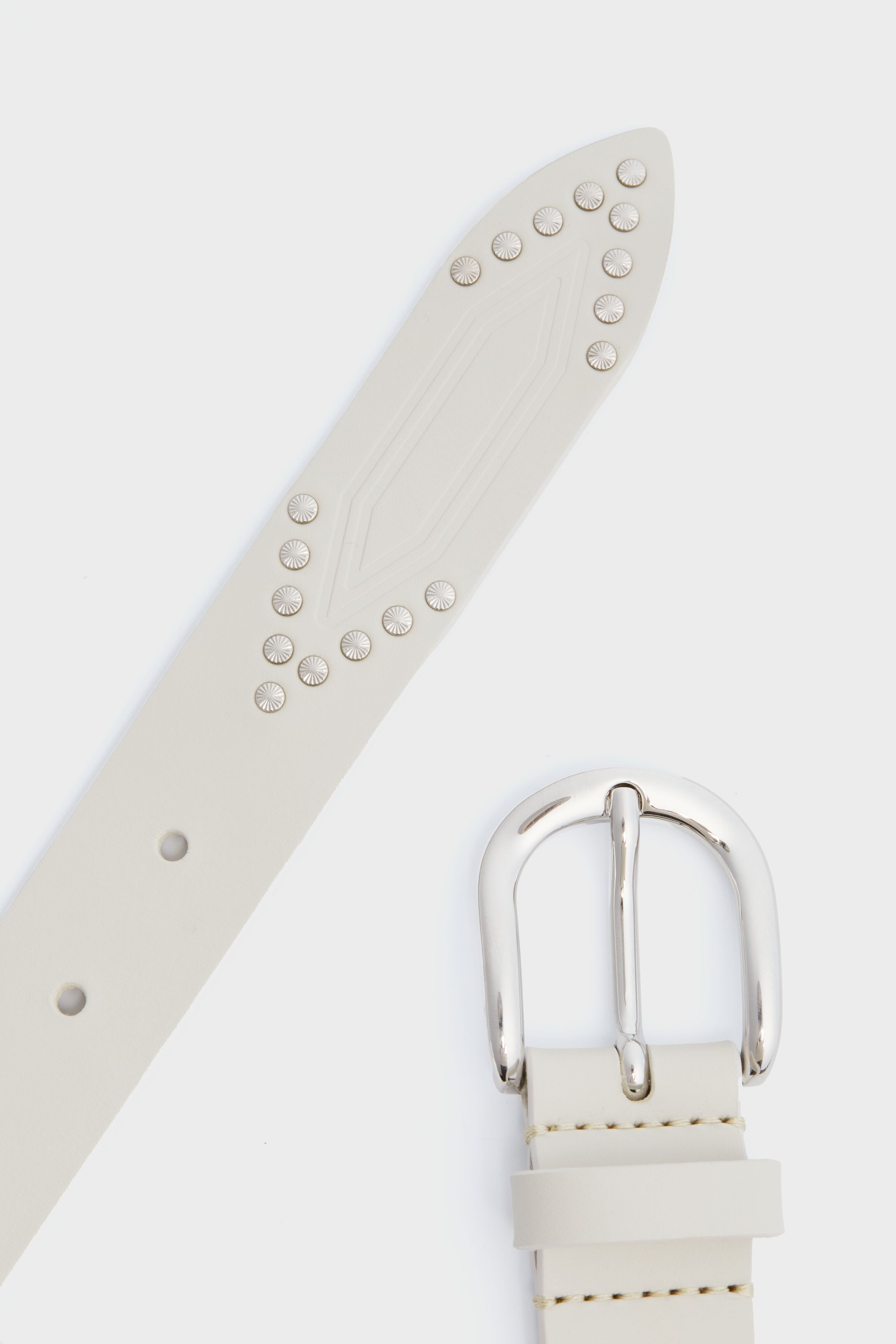 The Chalk Telly Belt is a must-have addition to your wardrobe. Crafted from leather. this stunner features silver-tone stud detailing with a classic frame buckle. offering a timeless element to any outfit. Pair with leather pants or denim. from desk to drinks. brunches to dinner parties!