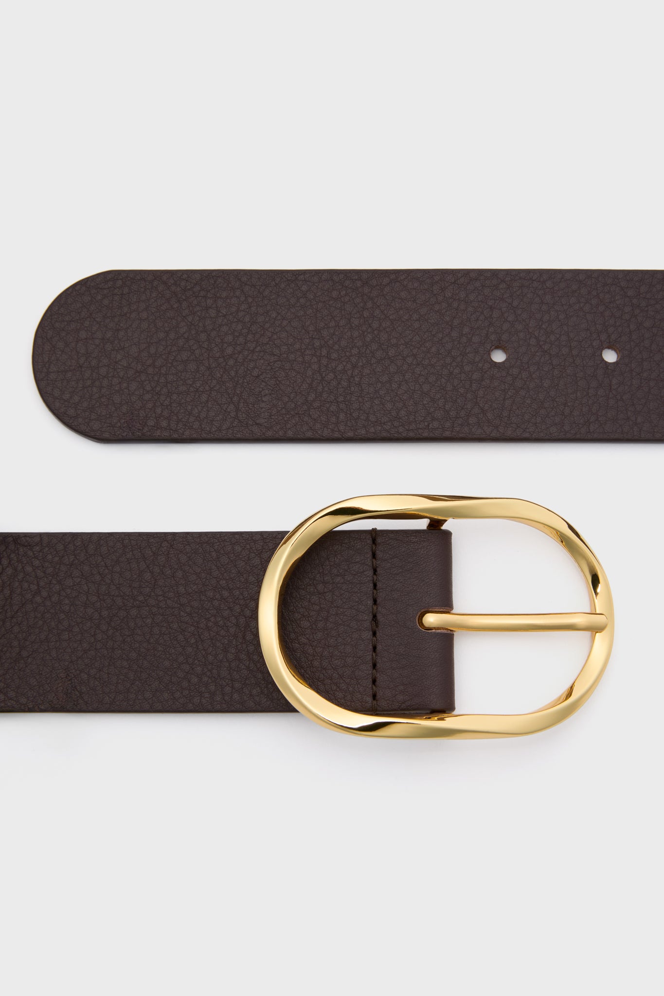 The Chocolate Kyra Belt is an essential addition to your year-round closet. Made with high grade Italian leather and a gold-toned twisted buckle. this can easily style hrough the loops of denim and trousers for an effortless everyday look.