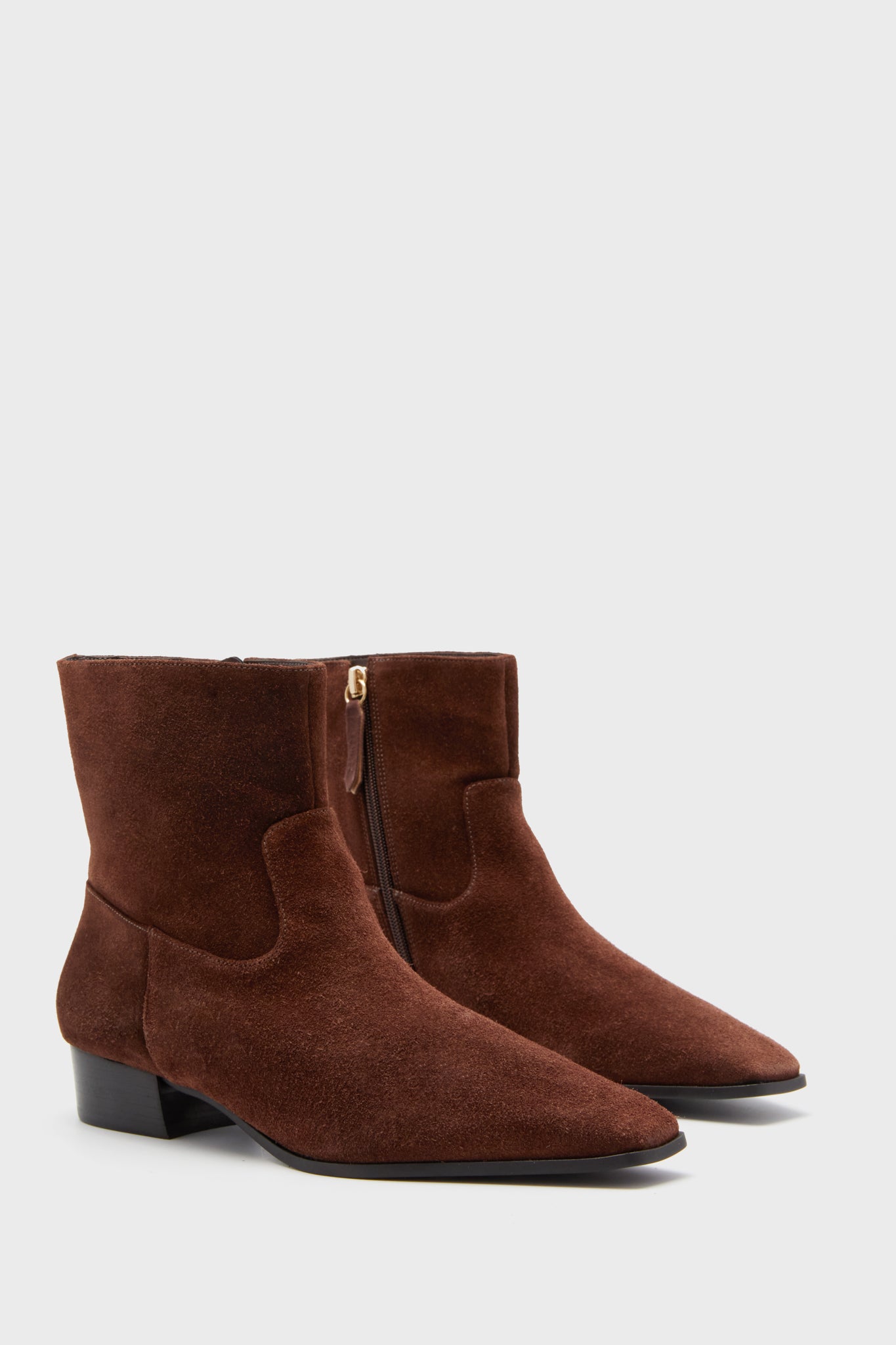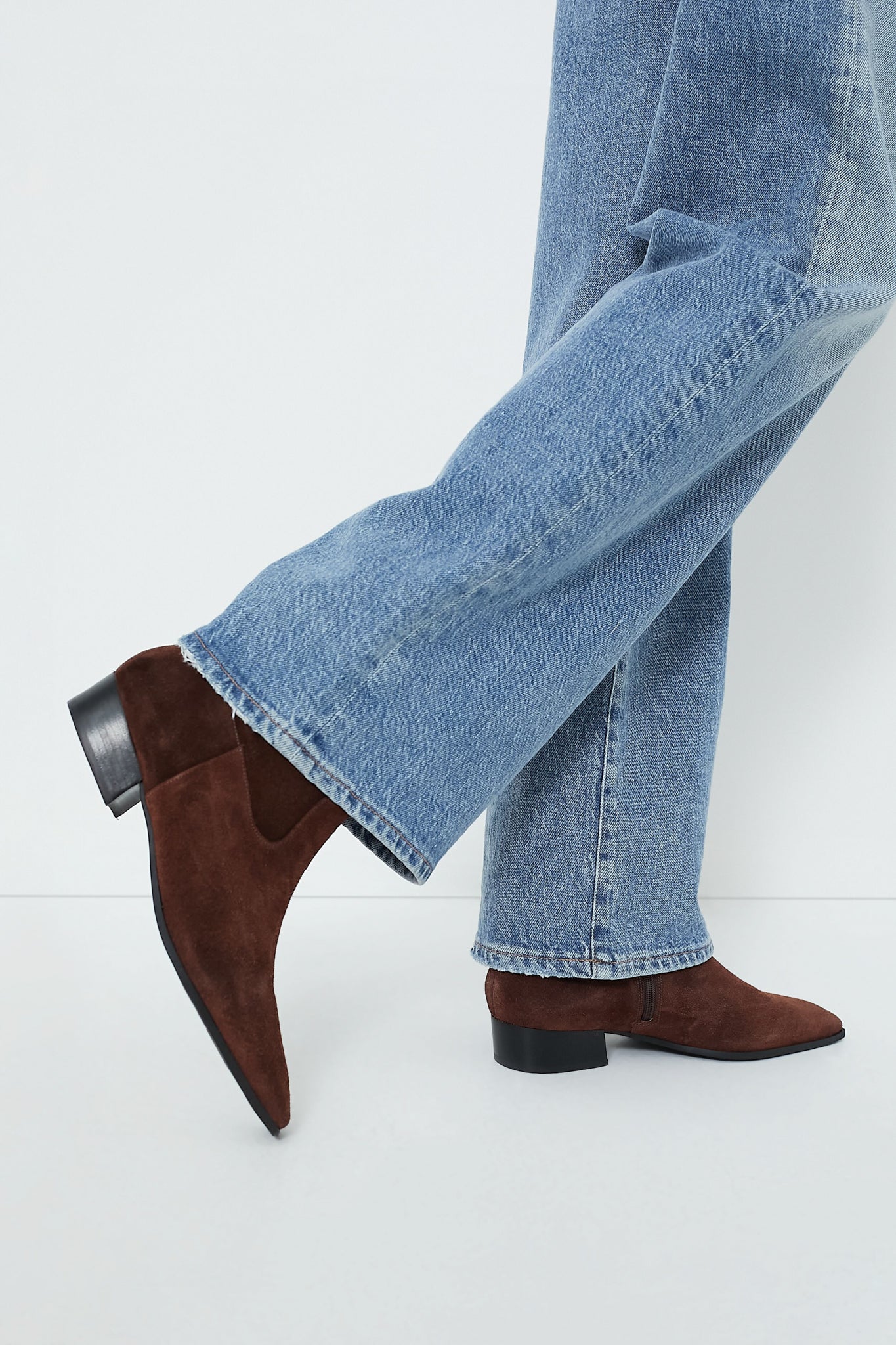An elevated suede bootie