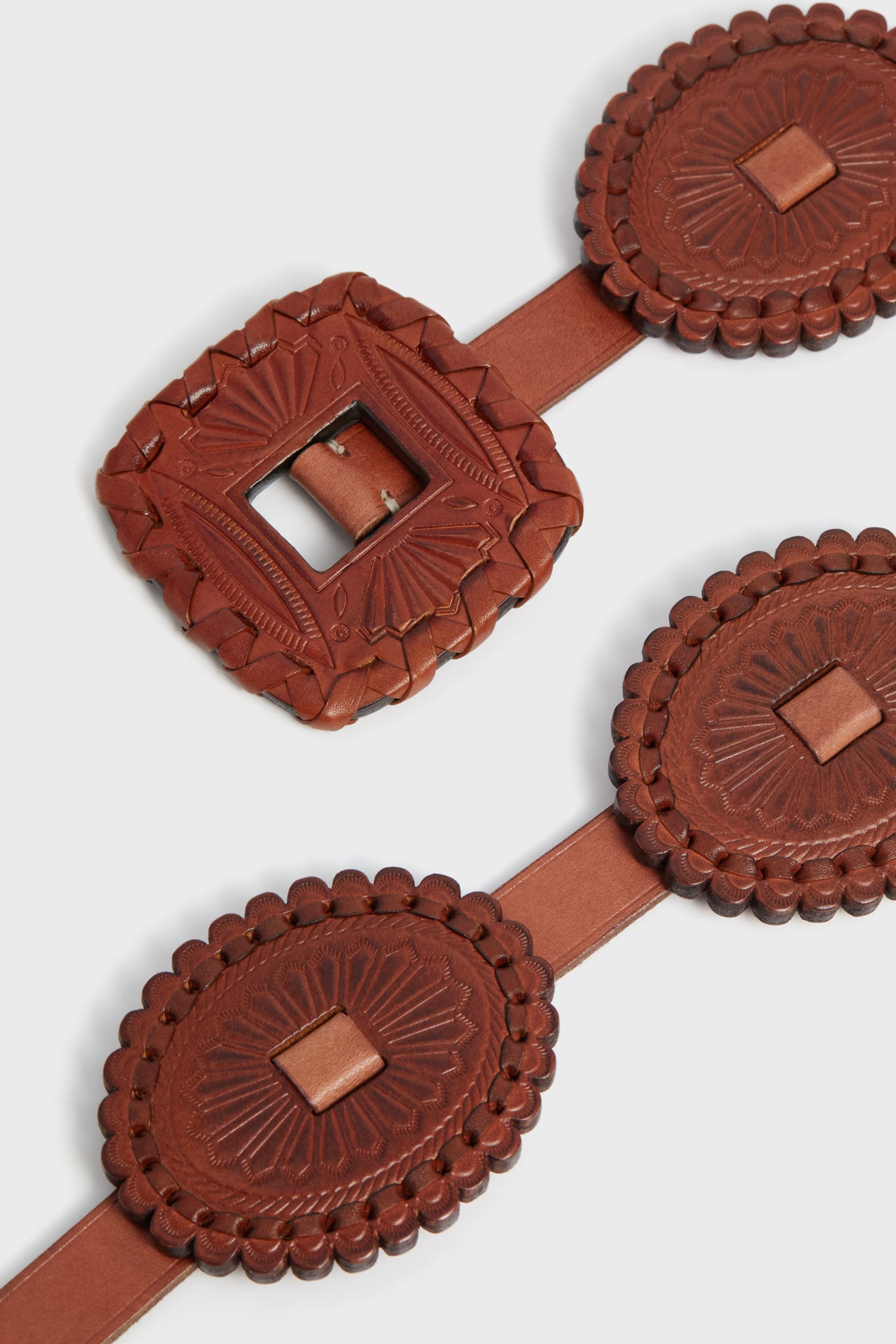Crafted from luxurious leather in a stunning neutral colorway. the Cuoio Leather Belt is the finishing touch your outfits have been needing. This skinny belt is defined by intricately engraved leather shapes. wear it with denim for a classic touch. or over a dress or a blazer to cinch the waist in style!