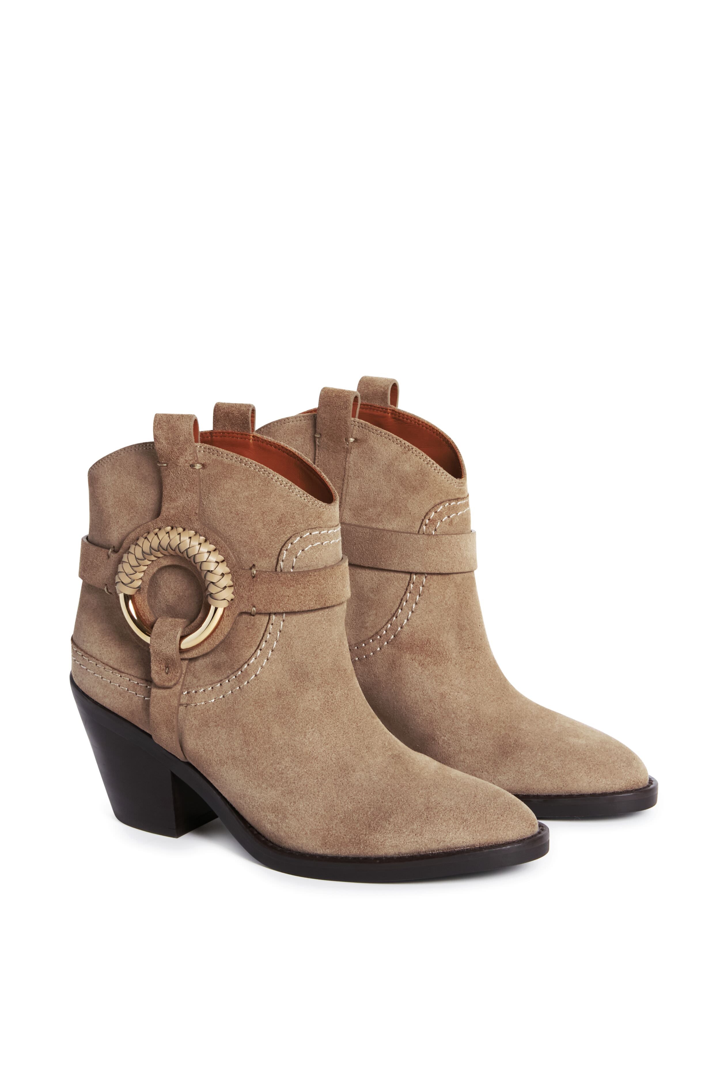 Reminiscent of Montana skies and Georgia sunsets. the Dark Beige Hana Boots are made for walking! Featuring a chic pointed toe. a sturdy block heel. and an effortless pull-on silhouette. these ankle booties are fabulously Western. Add these classics to your closet and pair with a mini dress for that coastal cowgirl look. or with your favorite denim. a blouse. and a shoulder bag for weekend adventures.
