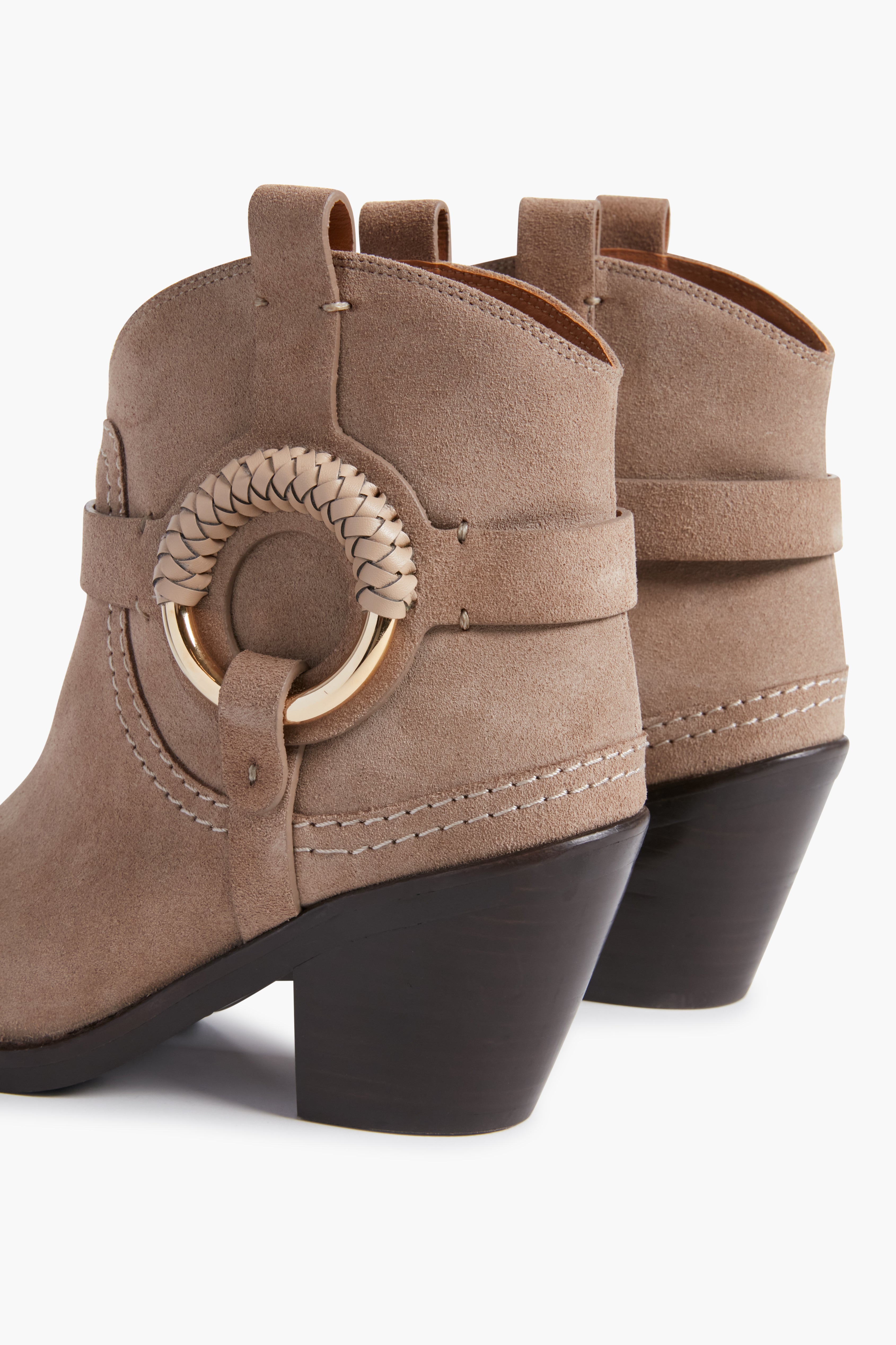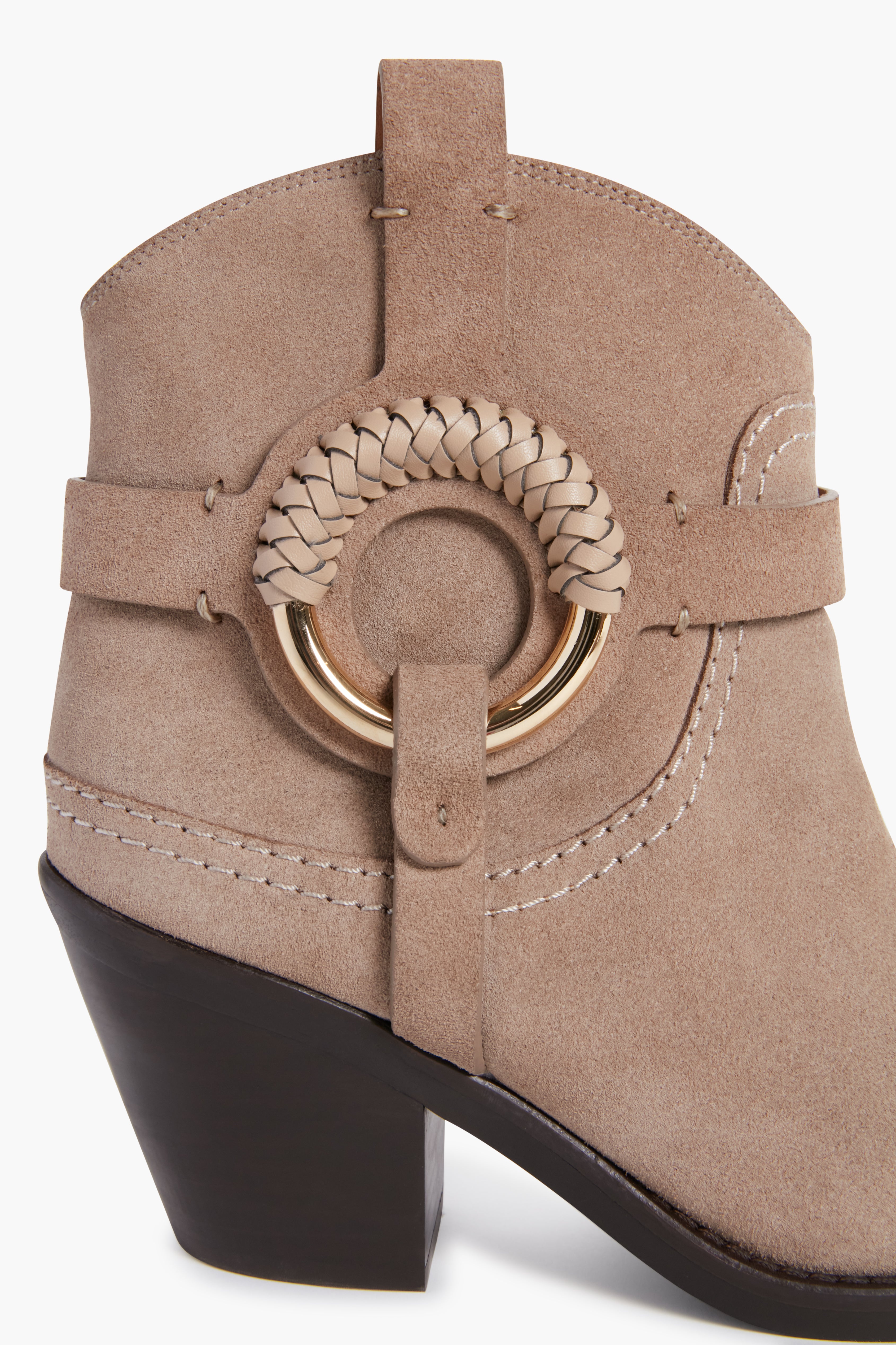 - Braided leather detailing at sides