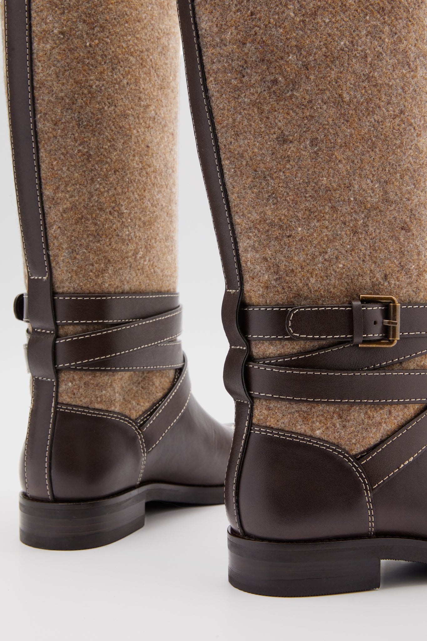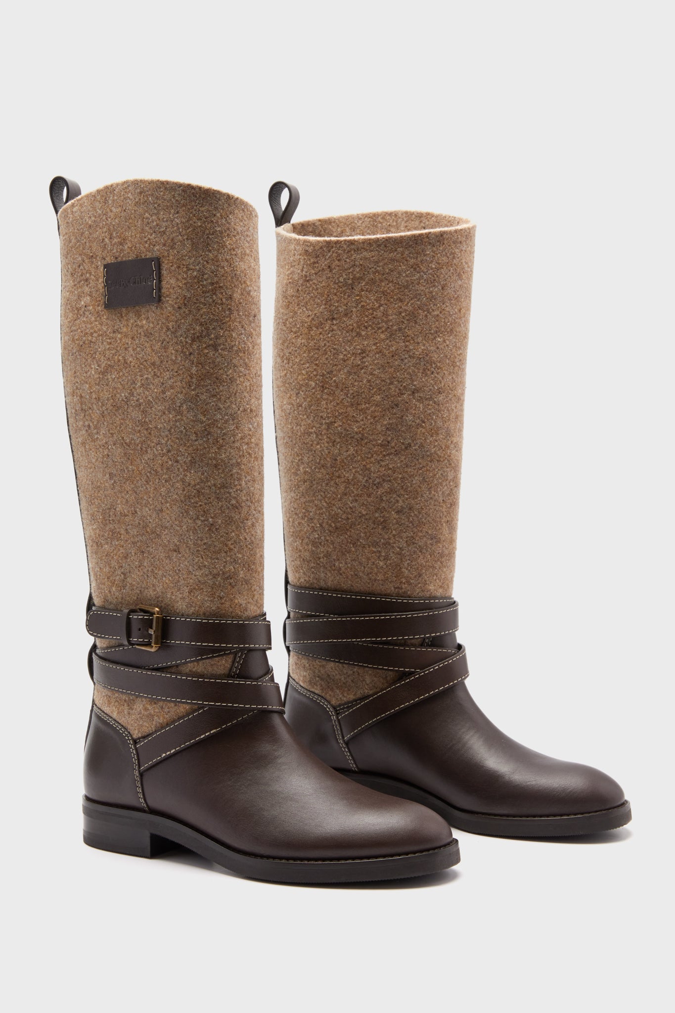 Up your shoe game with the ultra-chic Dark Brown Anim Mix Mat Boots. These classic boots feature elevated details such as wrap-around ankle straps and a mixed media design. Pair with a tweed mini skirt and blazer for an autumnal look. or with wide leg denim and a button down for an everyday style.