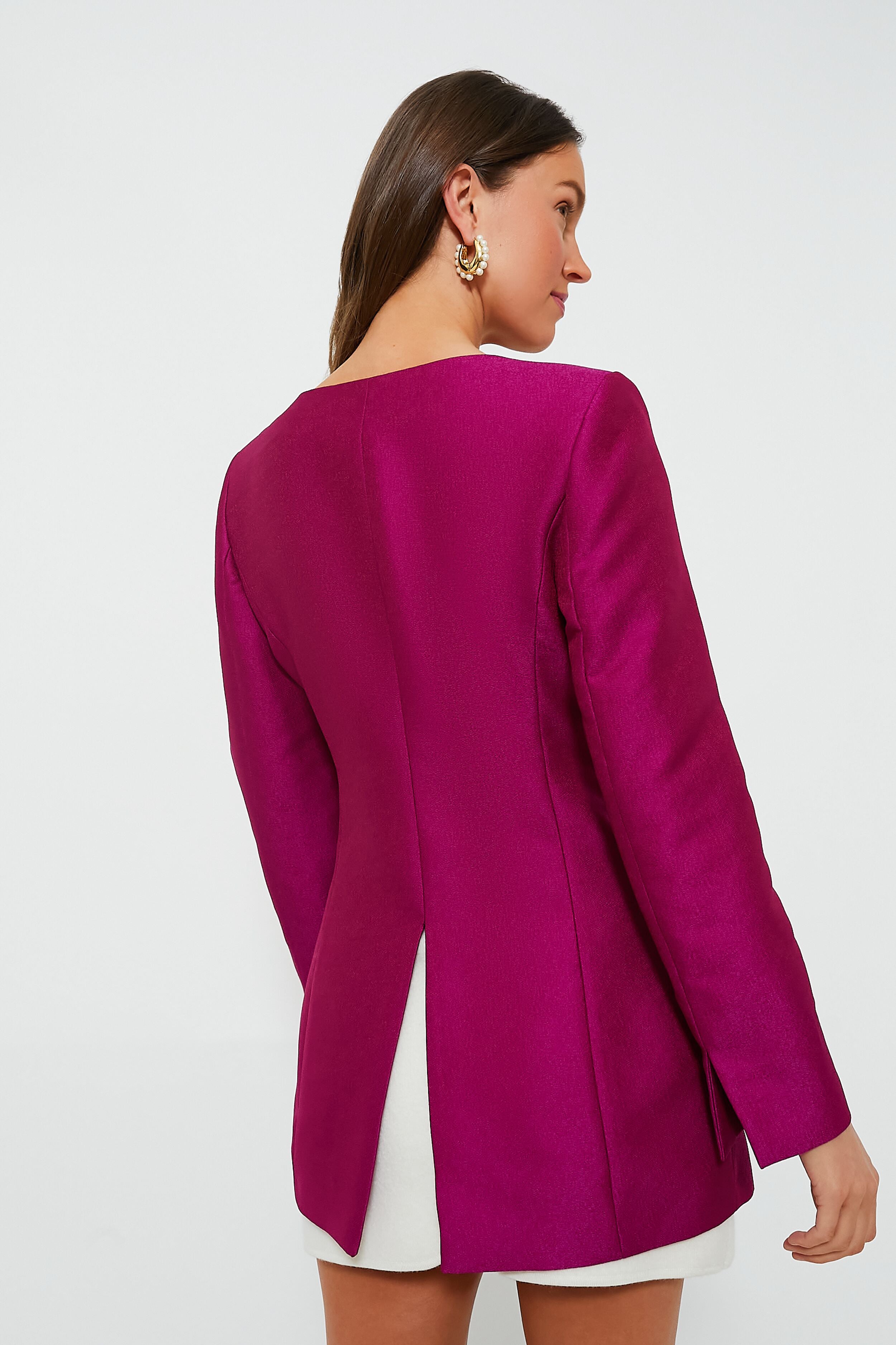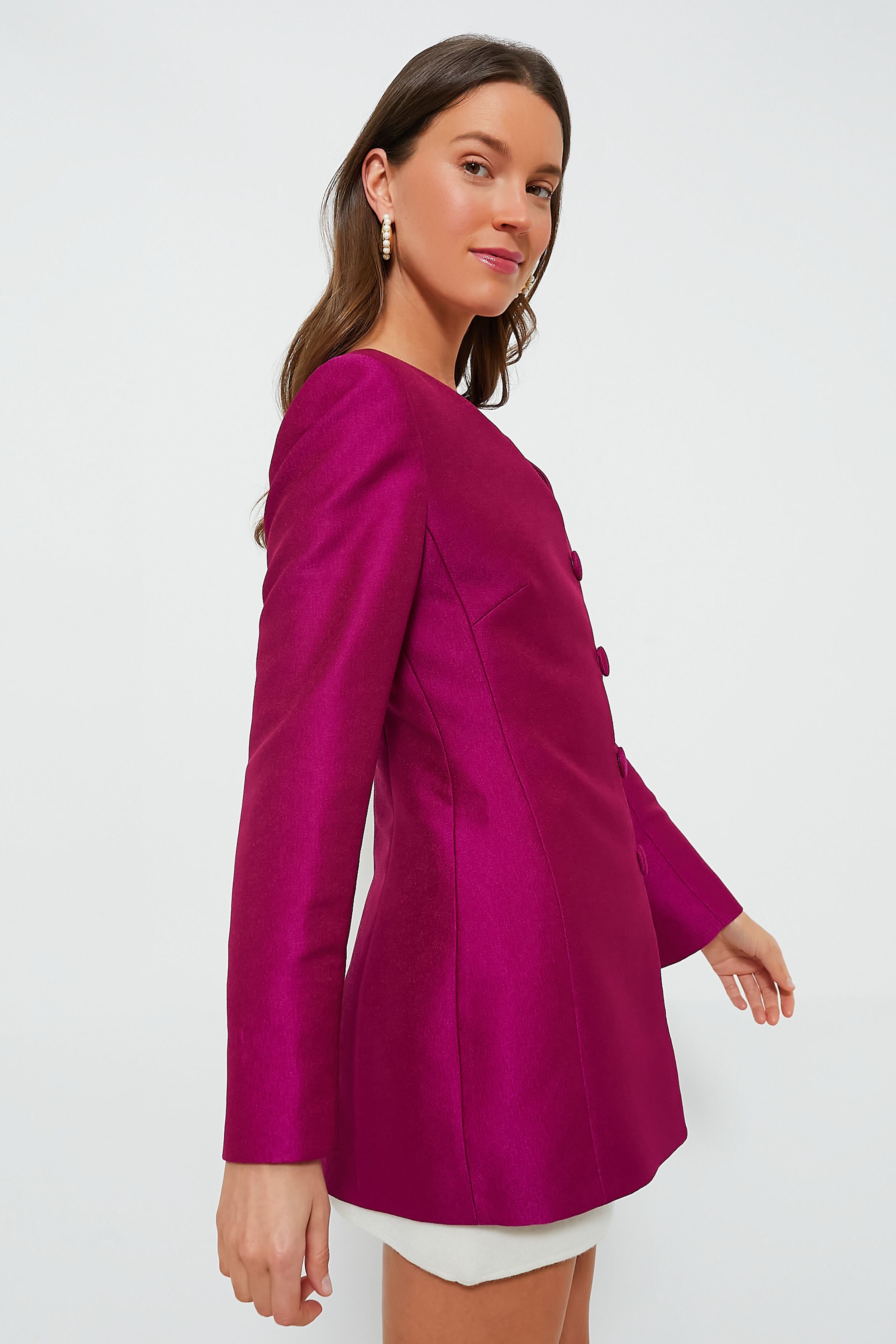 She has style. she has grace. she sets the pace in the Fuchsia Claudia Crepe Jacket. A piece meant to make you feel confident. featuring key details such as a fit-and-flare silhouette. darting along the bust. and a wide neckline with a center notch. Style with black wide leg slacks and sling back heels for presentation day or dress down with a pair of dark wash denim and booties for a lady's luncheon.