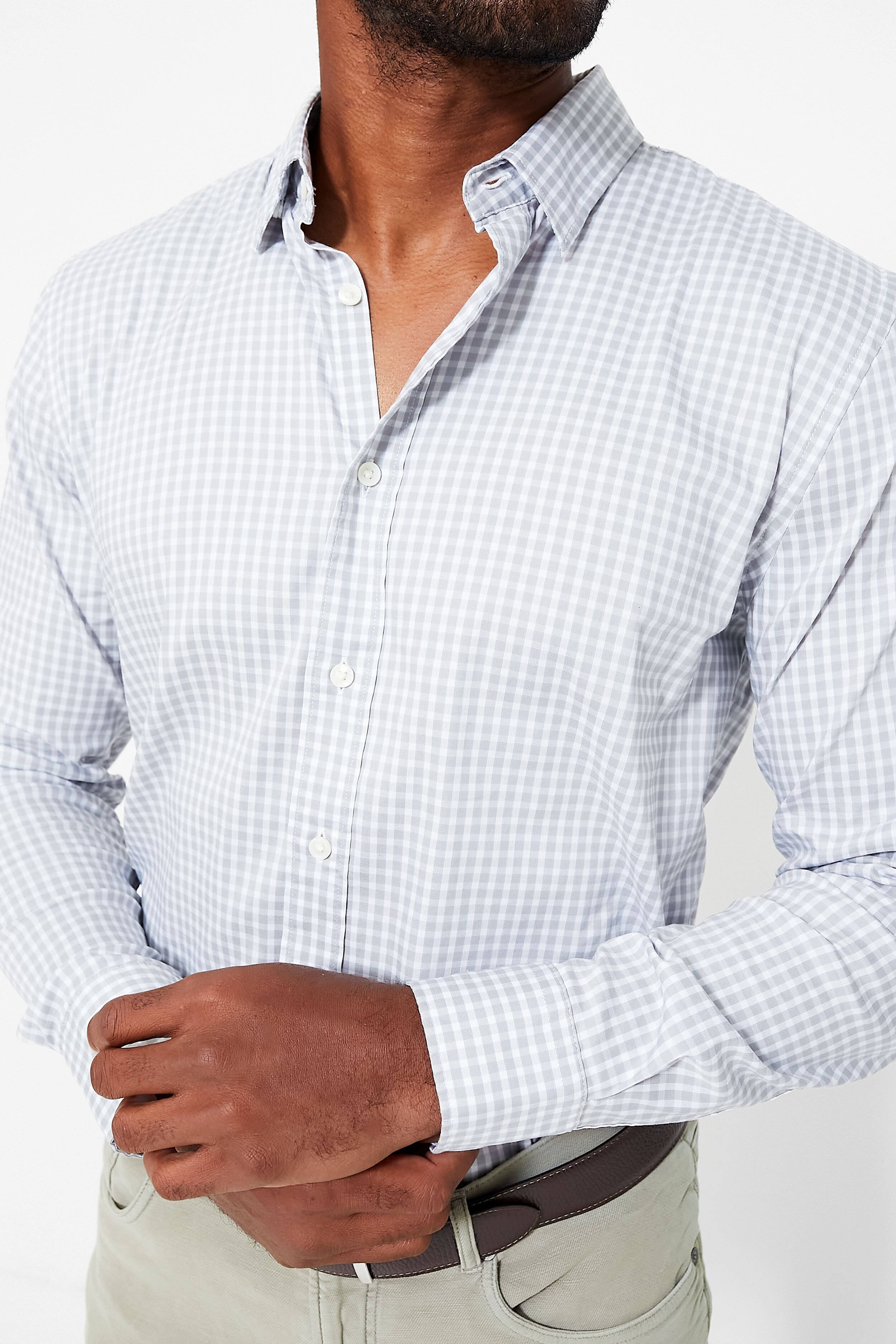 The Gray Sky Gingham Movement Shirt looks put-together and allows you to move freely. Incredibly soft and airy. the magic of this button-up comes from Faherty's custom-developed Supima cotton blend. Its extra-long staple fiber is renowned for producing the smoothest and finest yarn with natural performance qualities. add the perfect amount of stretch and you have the most comfortable shirt for all day wear. Wrinkle-resistant. with clean. refined tailoring. it's the top you can always count on no matter where you're going or who you're meeting.