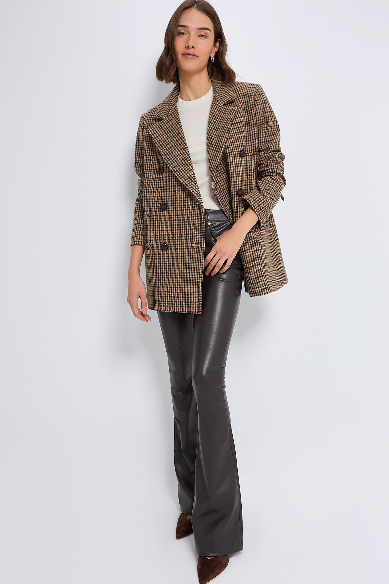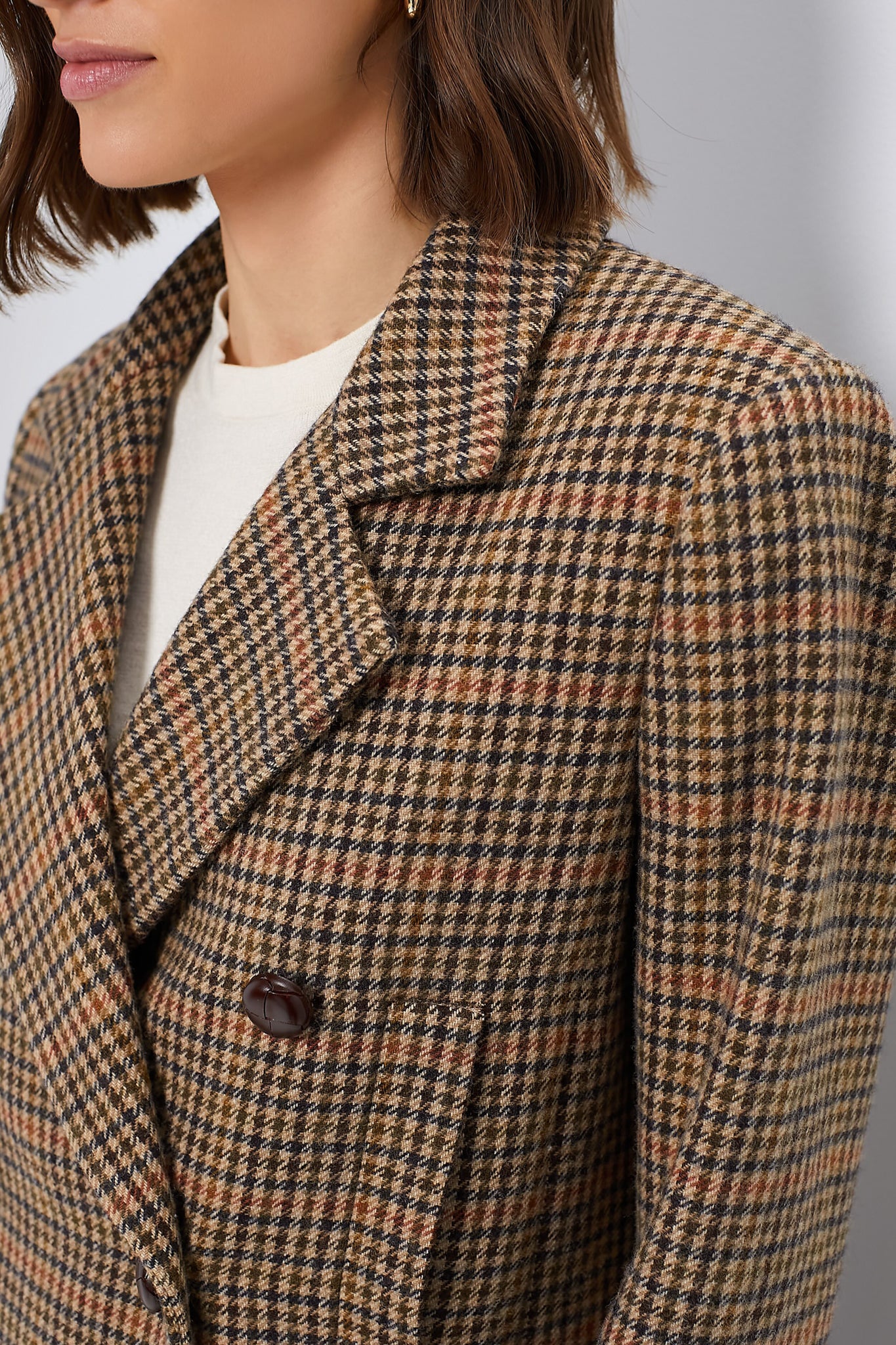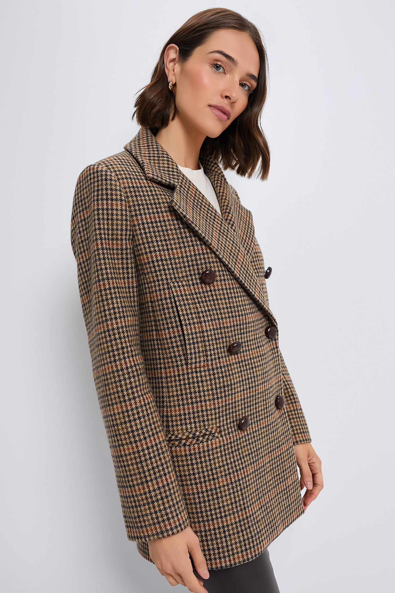 Fully evoking the “I borrowed my grandfather's coat” vibe. the Tweed Kensington is the perfect outfit topper to carry you through the colder seasons. Oversized but not overwhelming. this houndstooth classic is cut from a thick. heat-retaining wool blend and can play just as easily as a coat layered over a sweater on a brisk morning as it can styled as a blazer over a button up for a menswear inspired look. Designed for the boys but fit for the girls. this piece brings a touch of vintage countryside style instantly to any outfit.