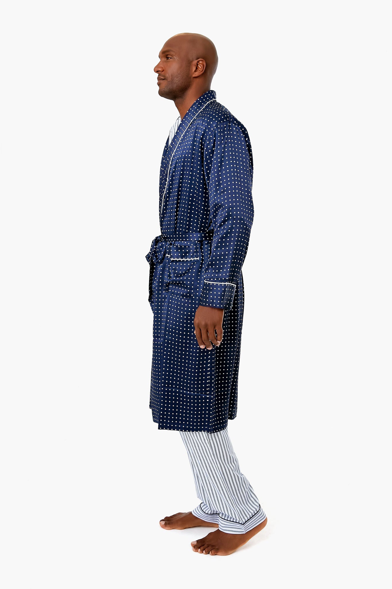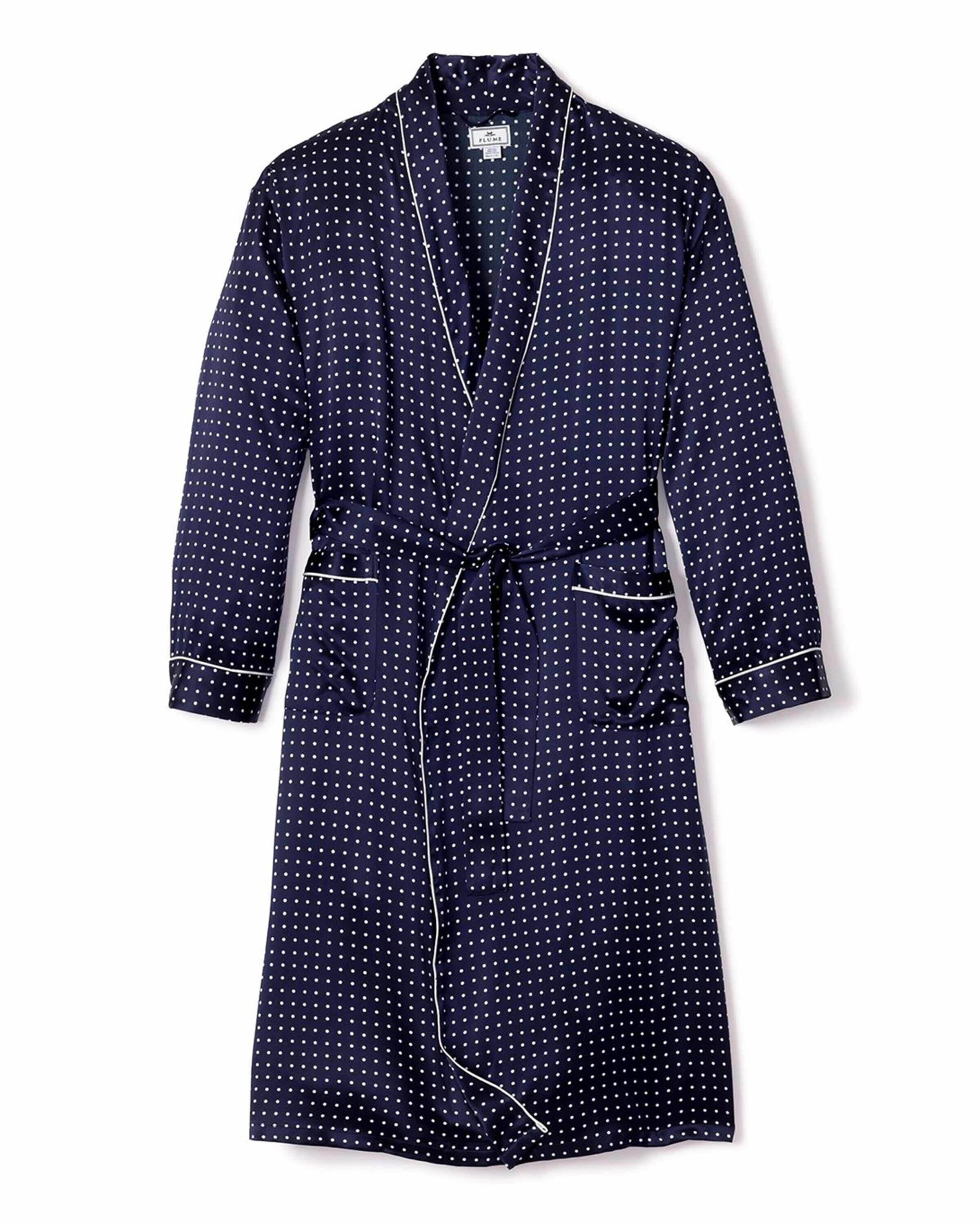 The Mens Navy Silk Long Robe is made from super-soft luxe silk with a shawl collar and a self-tie belt so it can be worn open or tied. This is the ultimate treat yourself purchase. as you will feel blissfully comfortable every time you slip it on. Add slippers and a robe for relaxing mornings with a cup of coffee!