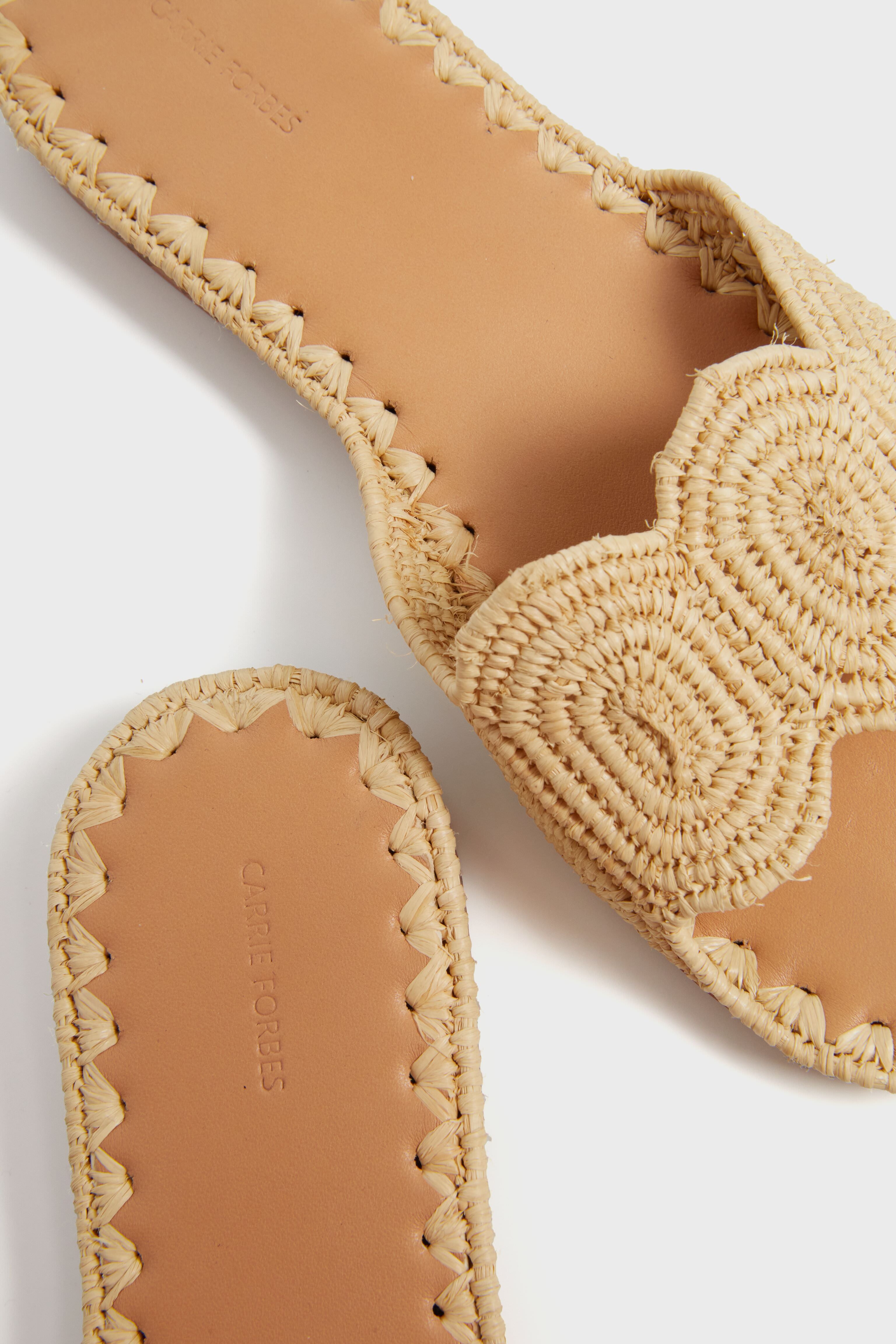 Carrie Forbes launched a collection of hand-woven raffia shoes from Morocco. comprised of a weave indigenous to the culture. True handicrafts. it takes up to a full day to weave just one pair.