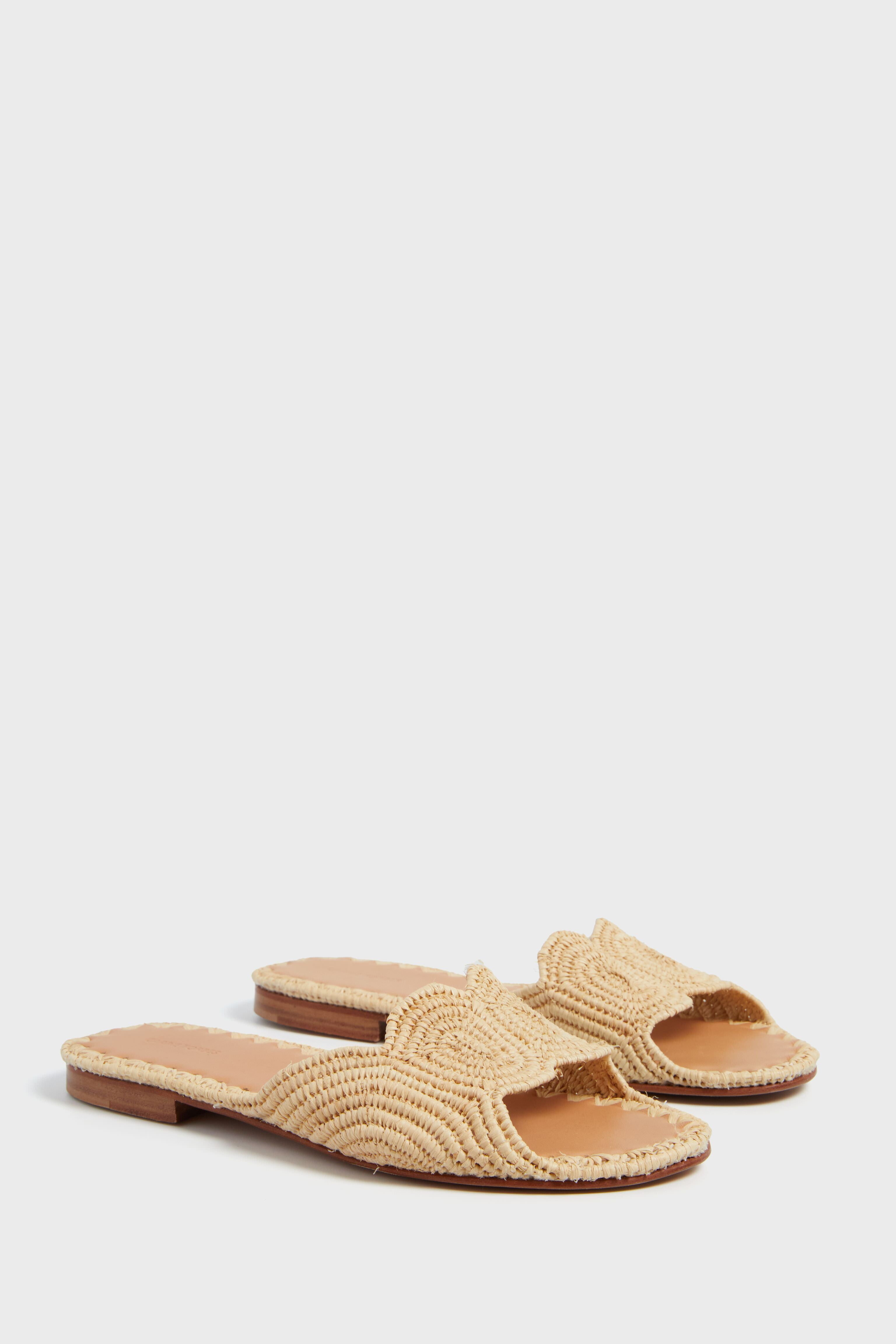 The Natural Raffia Naima Sandals feature a foot strap crafted from woven circles. Handmade. these offer an organic element to any wardrobe. Add a day dress and sunhat for a beachy. boho-inspired look.