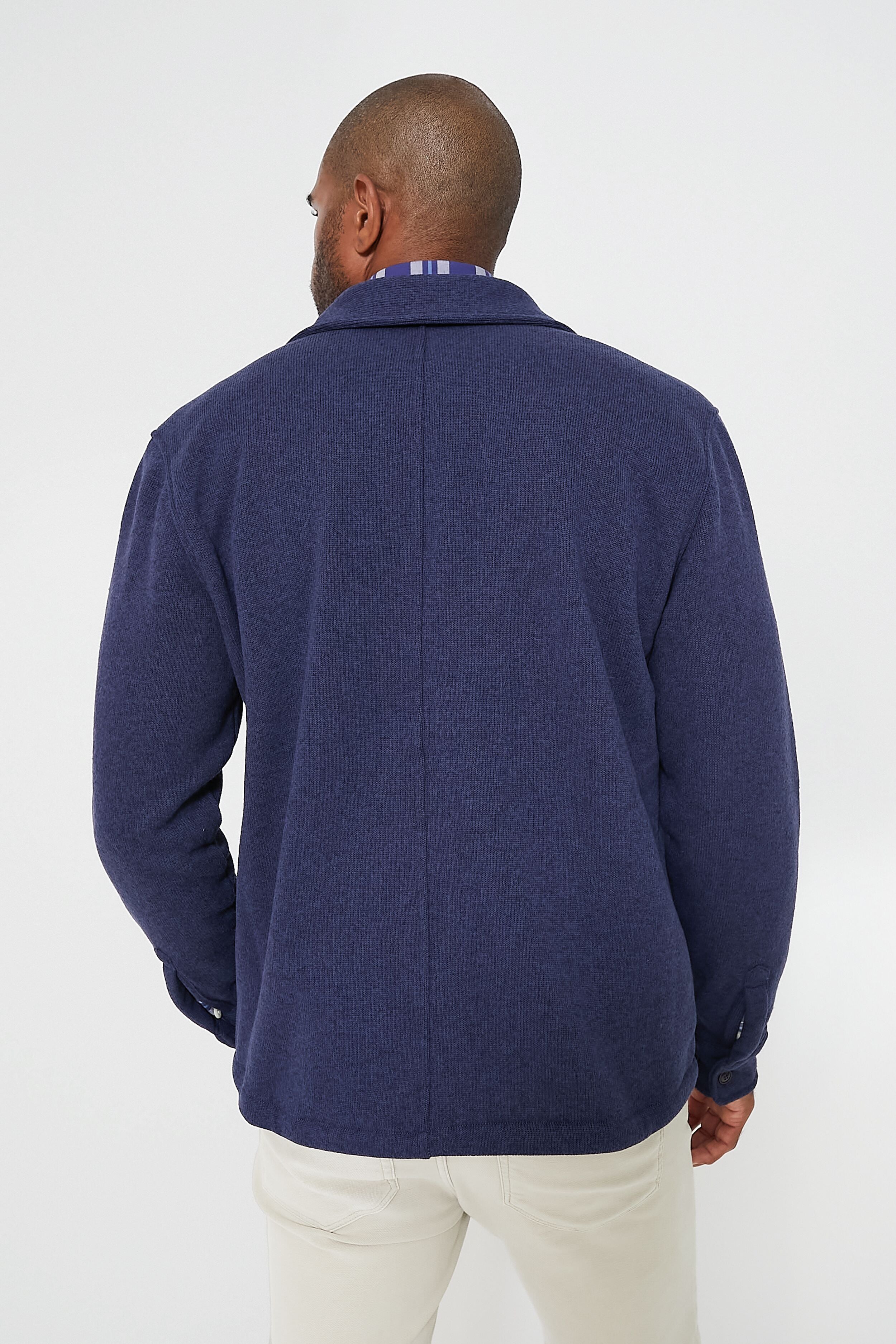 Classic fleece comfort meets versatile design in the Navy Crown Sweater Shirt Jacket. Crafted from incredibly soft recycled performance fabric that offers lightweight warmth in cool weather. this piece features a spread collar. a front button placket. and side slit pockets for convenience. Style with denim. a long sleeve tee. and sneakers for outdoor chilling around the bonfire or for a cozy brunch look.
