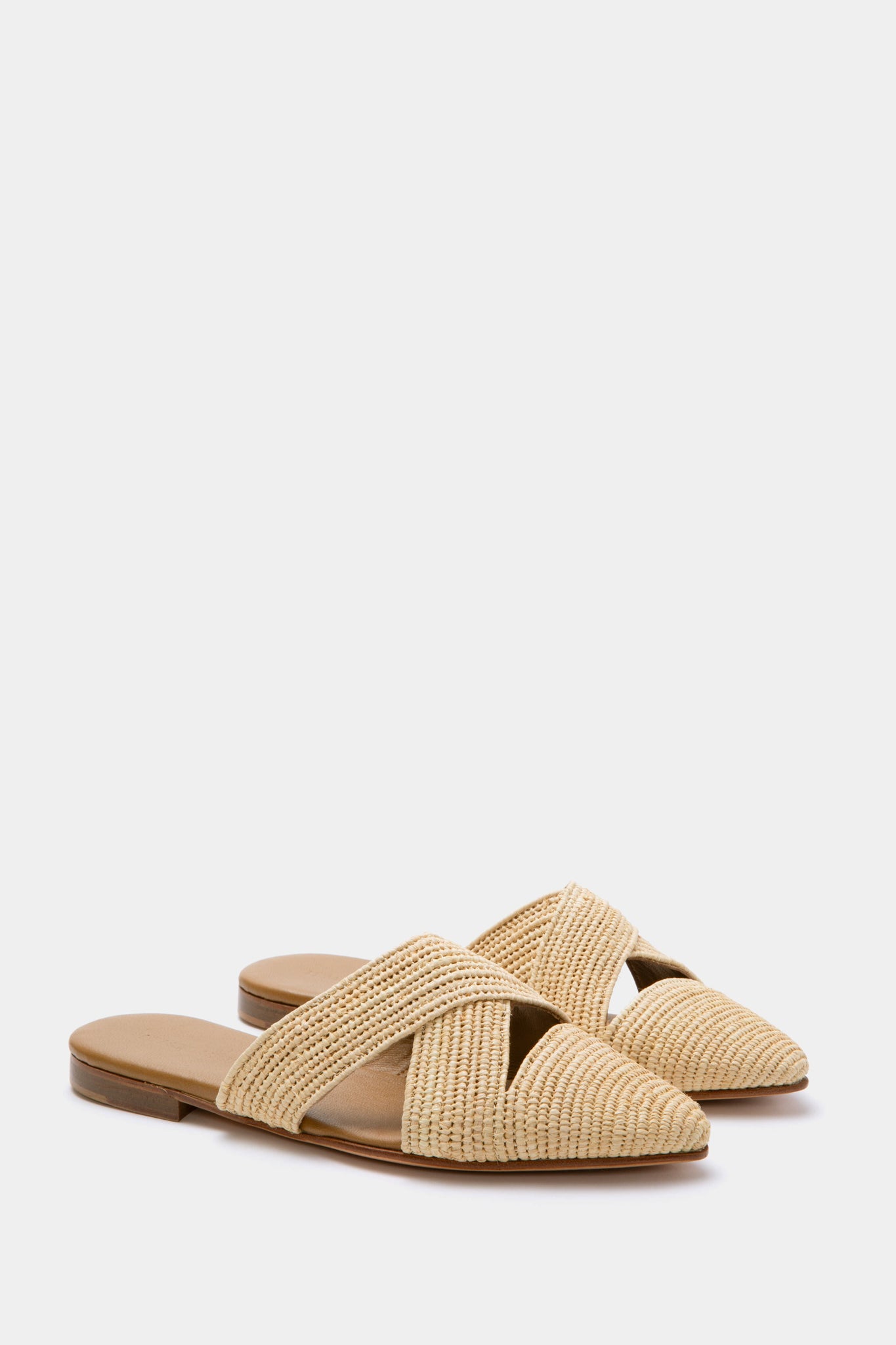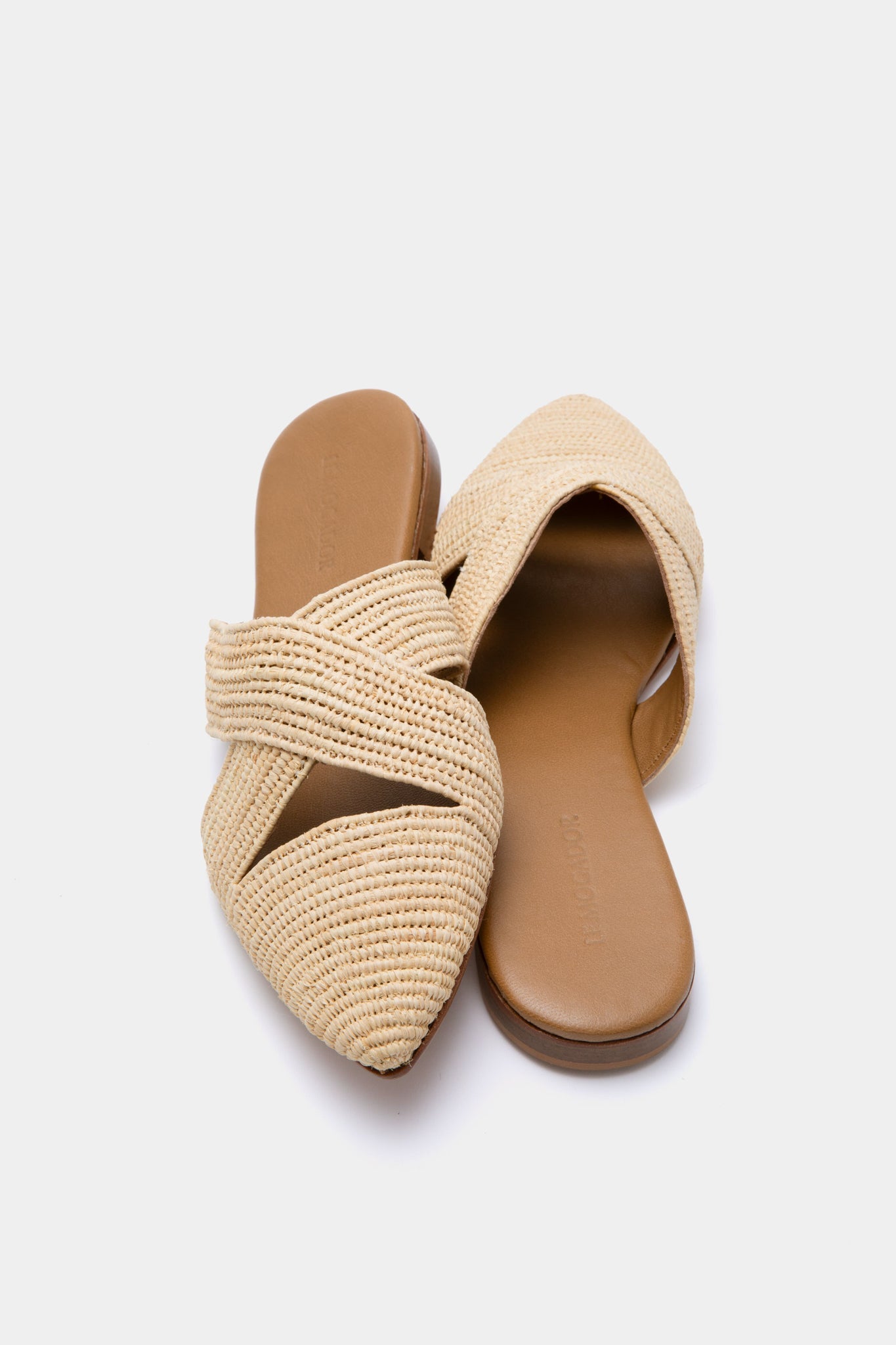Slide into spring and summer with the Nude Azoulay Sandal! Designed with a natural raffia upper and criss-cross straps. these are a slightly elevated take on your typical warm weather shoe. From the office to beachy vacations. we are wearing these with mini dresses and denim alike.