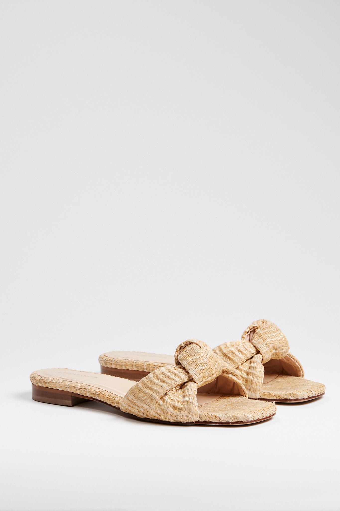 Step up your everyday warm-weather attire with the Brit Sandals. A founder favorite. these day to night slide-ons feature a raffia knotted strap that is lined with soft leather to make the most comfortable and wearable silhouette. With a mini block heel that elevates even the most casual of looks. we are wearing these open toe stunners with everything from cut off shorts to maxi dresses. Whether you're headed on a family vacay or grabbing margaritas with the gals. we're sure these will play on repeat this summer.