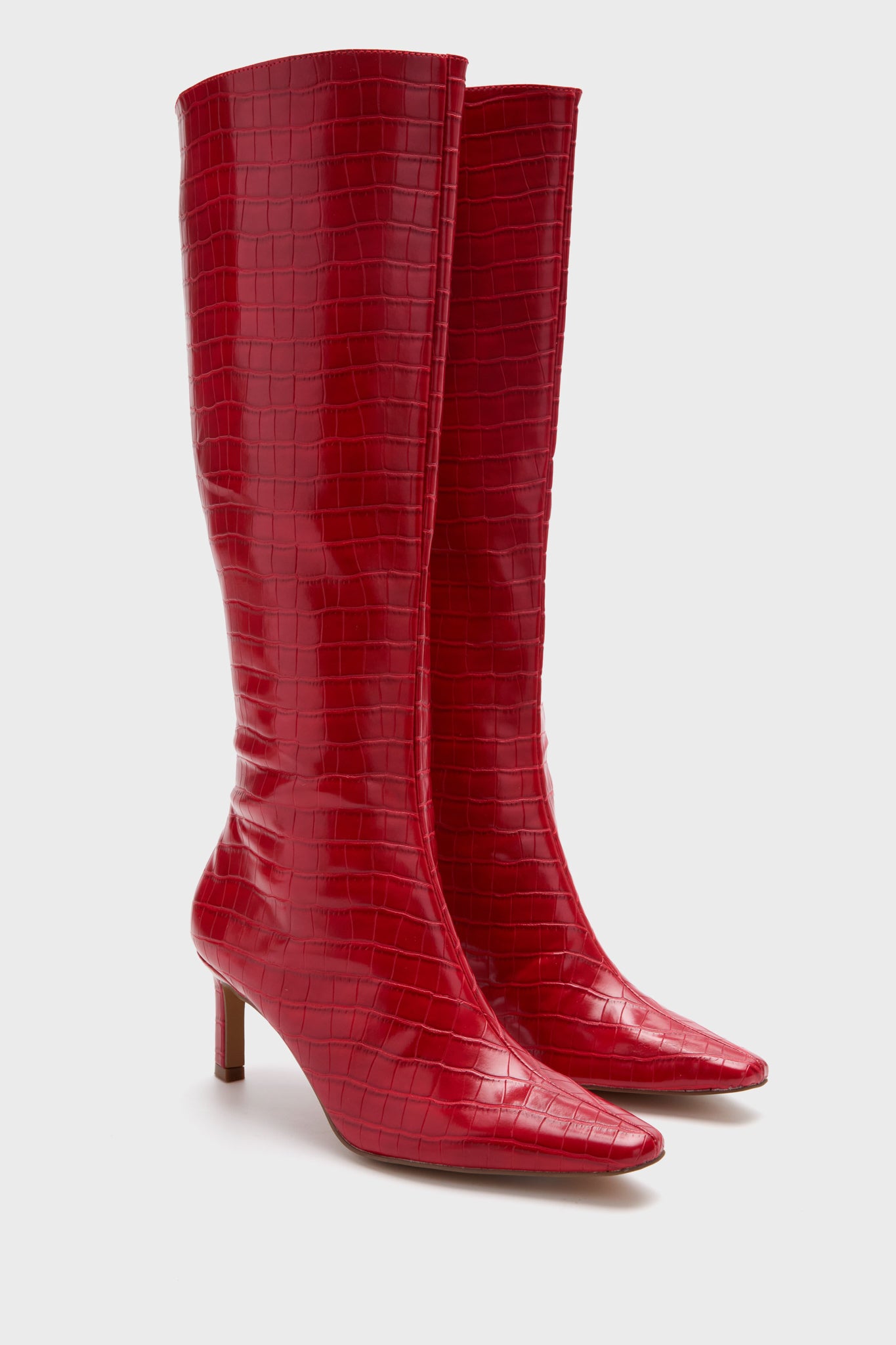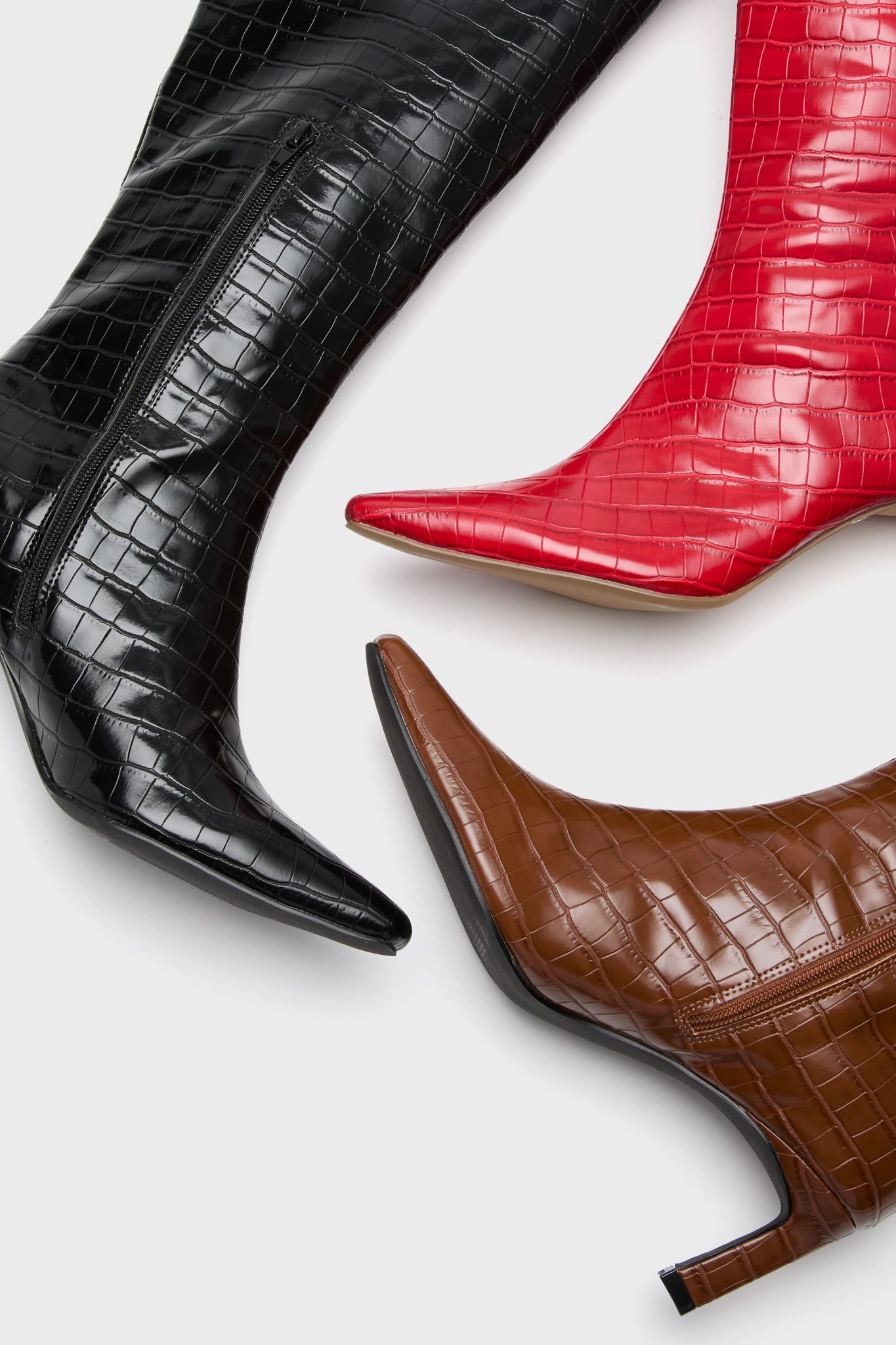 A chic pointed toe boot with croc-embossing