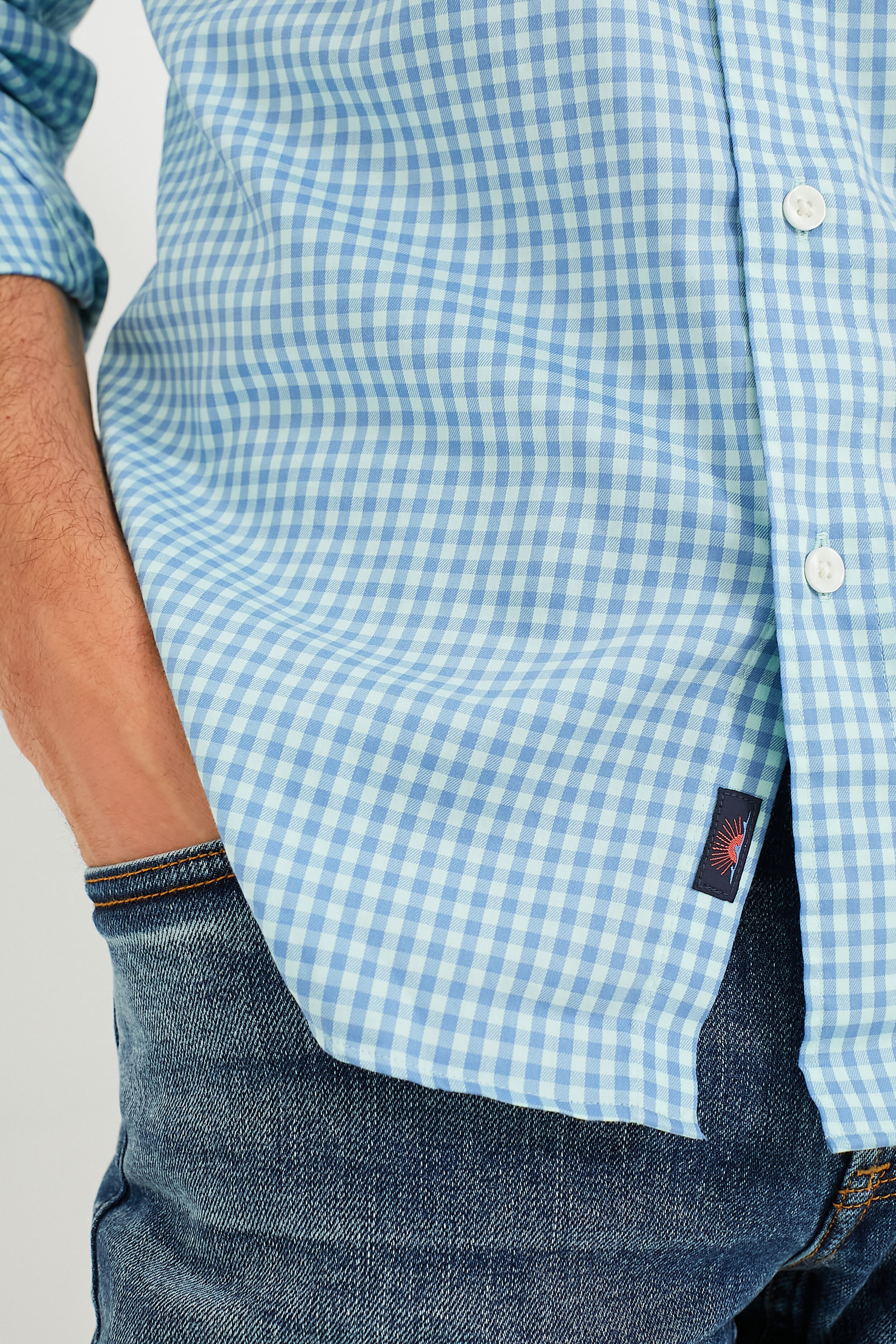 The Navy White Check Movement Shirt is a closet must-have. Incredibly soft. wrinkle-resistant. and tailored to perfection. this shirt is put-together and airy for all-day comfort.