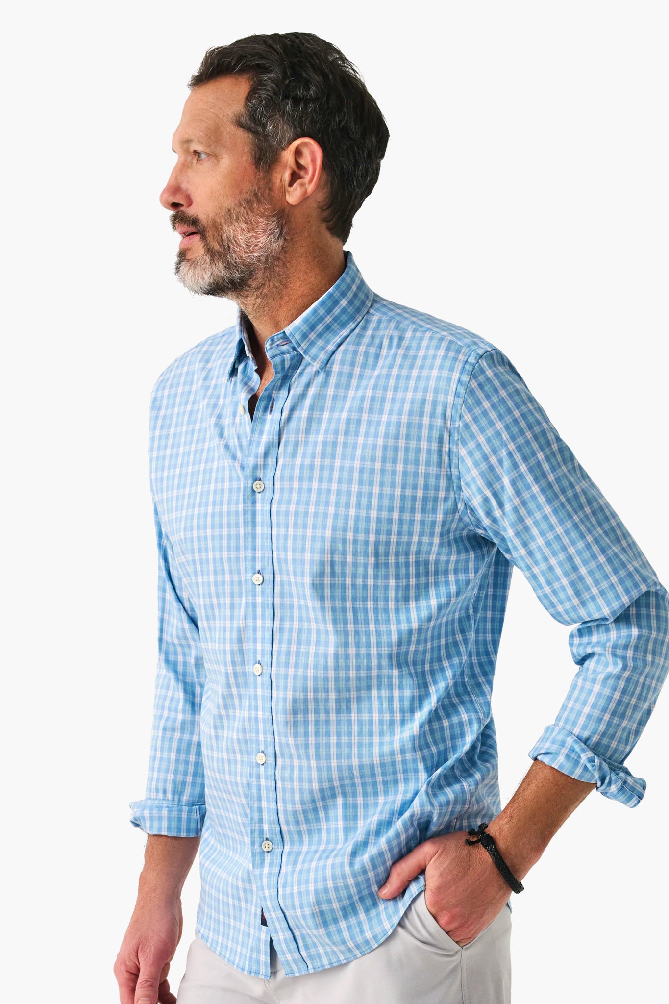 Incredibly soft and airy. the Shorefront Check Movement Shirt is made from the smoothest and finest Supima cotton-blend yarn with natural performance qualities that set it apart from the pack. With the perfect amount of stretch so you can comfortably wear it all day long. we love its spread collar with concealed buttons. shirttail hem. and easy checkered pattern. Great for wearing with loafers to brunch. or with shorts and sunglasses for a backyard hang. you'll reach for this one over and over again.