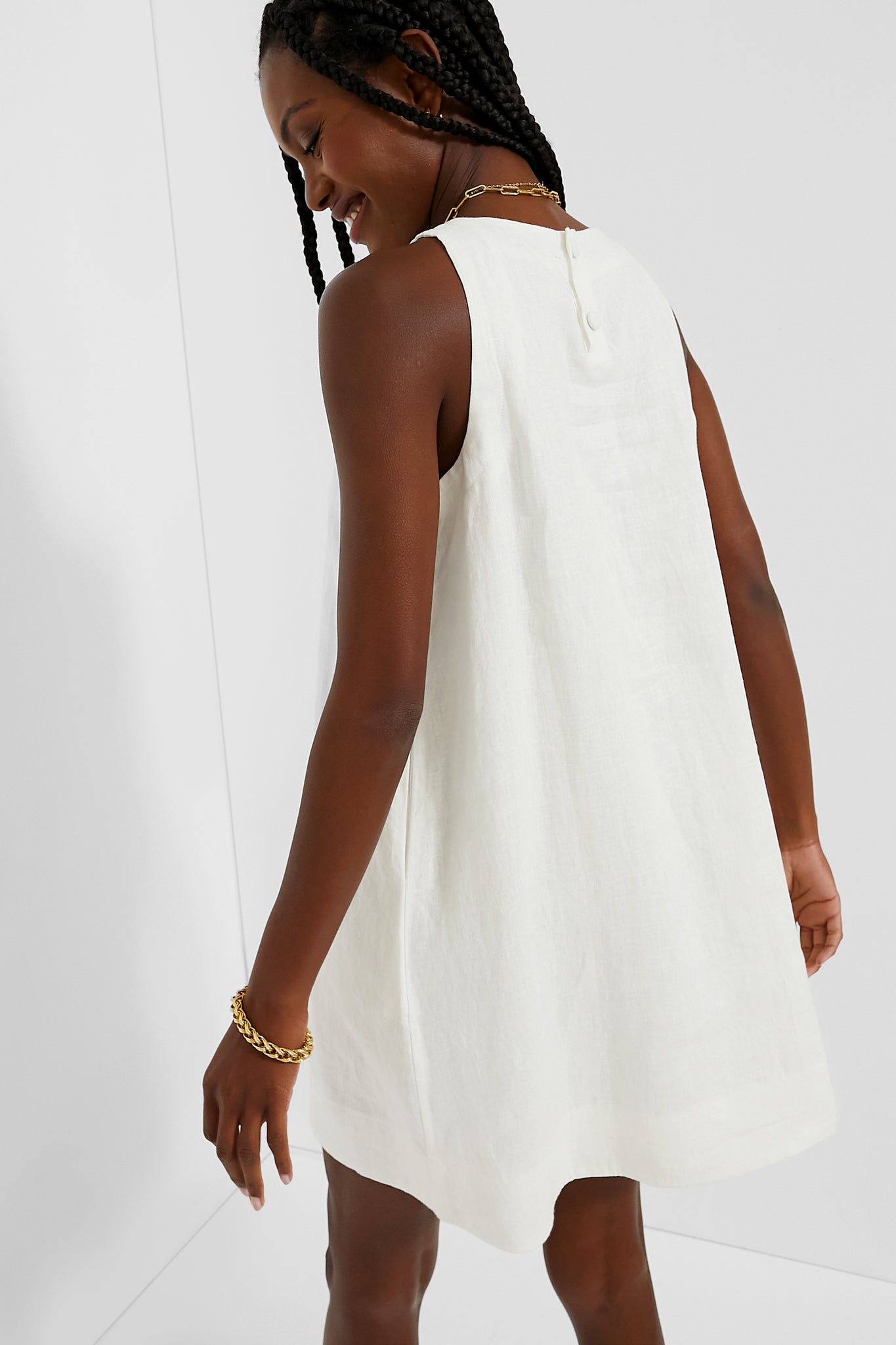 Need something easy and lightweight to throw on this season. then the White Pauline Dress is for you! With a lightweight linen material. round neckline. and a flattering A-line silhouette you will be able to move comfortably. Paired with sandals. shades. and a hat for the beach or with a sweater over your shoulders and a top handle bag for a sunset dinner.